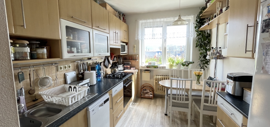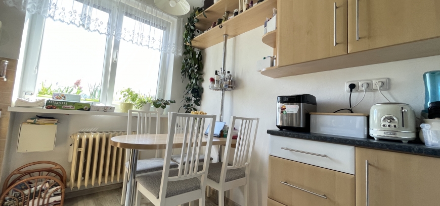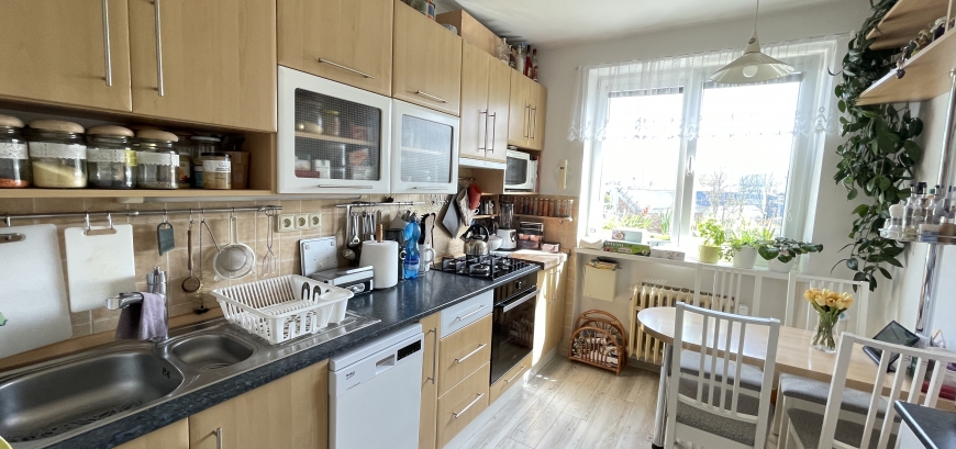 Když vstoupíte do tohoto světlého bytu, zaplaví Vás pocit domova. Nemovitost nabízí dispoziční uspořádání 3+1 s optimální užitnou plochou 76m2. Výhodou jsou neprůchozí pokoje a velkorysá chodba. Příjemná je pak orientace jednotlivých místností. Obývací pokoj s prostorným balkonem a ložnice jsou orientovány na JZ, kuchyně s pokojíčkem na JV. Příjemně sladěné barvy a doplňky dodávají prostoru na útulnosti. Celkově působí byt velice vzdušně.