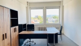 - kancelář č. 1 s celkovou výměrou 42m2 ( předělena příčkou na dvě kanceláře (2x 21m2). Kanceláře je možné pronajmout pouze jako celek